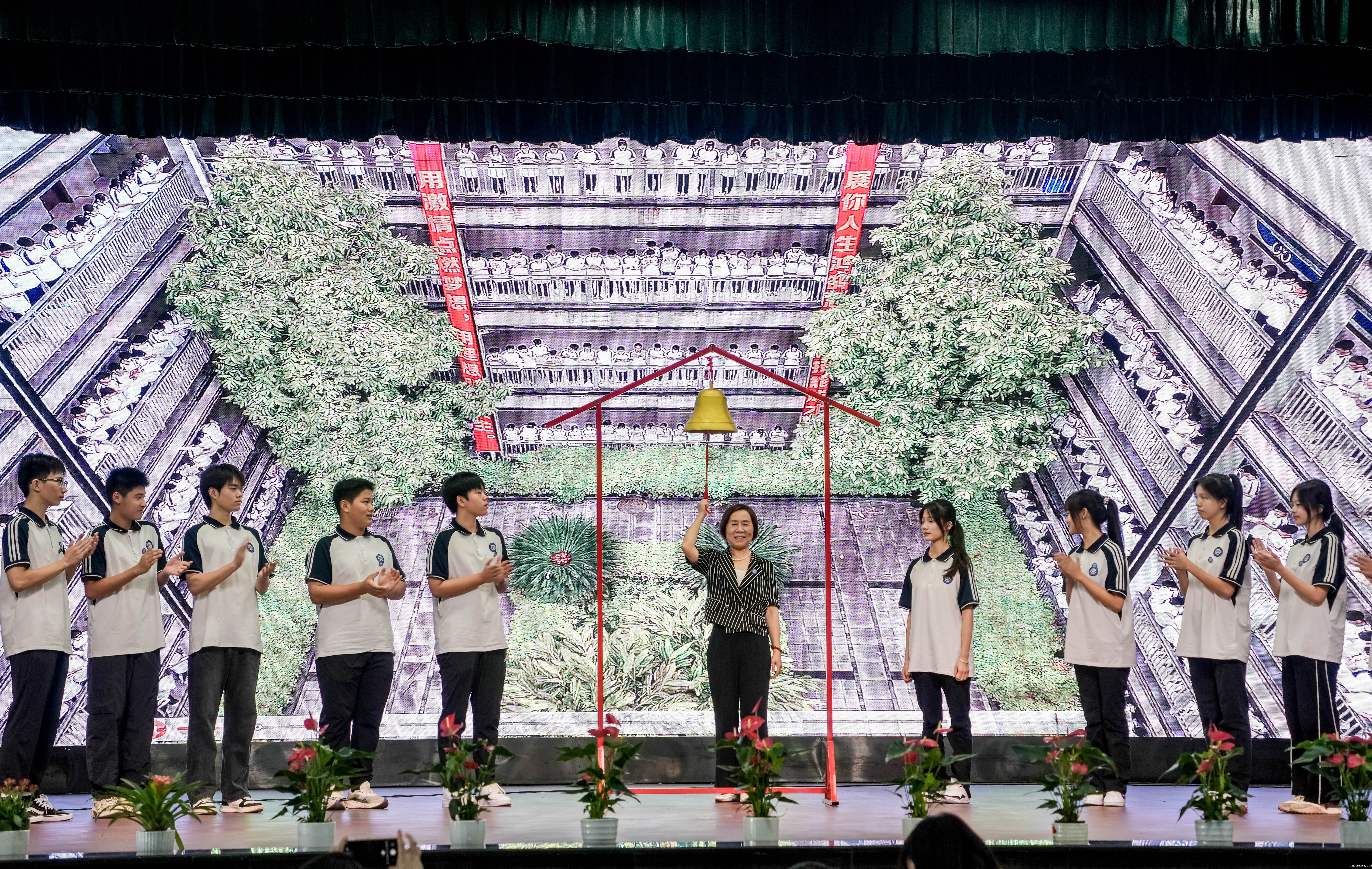 典礼上,校领导亲自为2024级新生代表佩戴校徽,象征着荣誉与使命的传递,高潮时刻,彭超书记带领2024级新生一同奏响具有深远寓意的开学铜铃,铜铃声悠扬穿越校园,宣告新学期的壮丽启程。这不仅是对过去的告别,也是对未来的憧憬和展望。